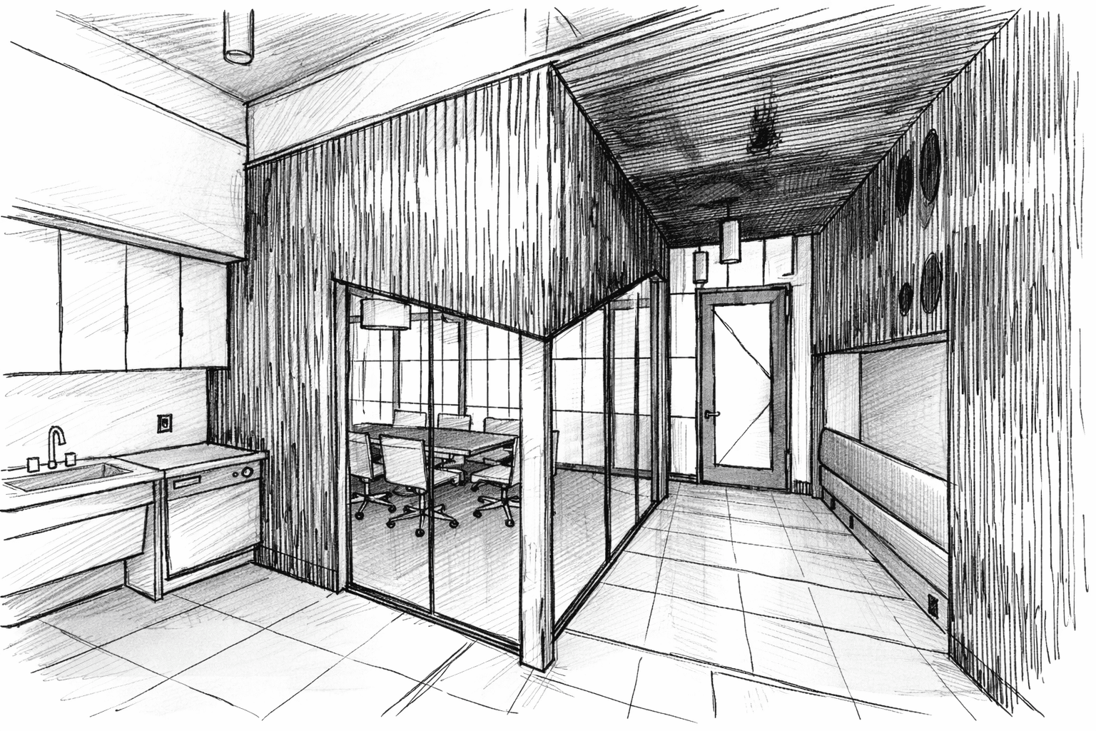 The layout supports a seamless rhythm between heads-down work, meetings, and informal conversations. Every zone is purposefully placed to encourage productivity without sacrificing comfort or style.